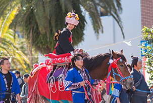 翌日、正装した花嫁を馬に乗せ、花婿(はなむこ)は手綱を取って家路をめざしました。馬に付けた鈴がシャンシャンと鳴るようすから「シャンシャン馬」と呼ばれ、「鵜戸さん参りは春三月よ~」(シャンシャン馬道中唄)と唄われました。