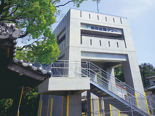 津波から人命を守るために、平成27年(2015)に建設された、蛎原(かきはら)避難タワー